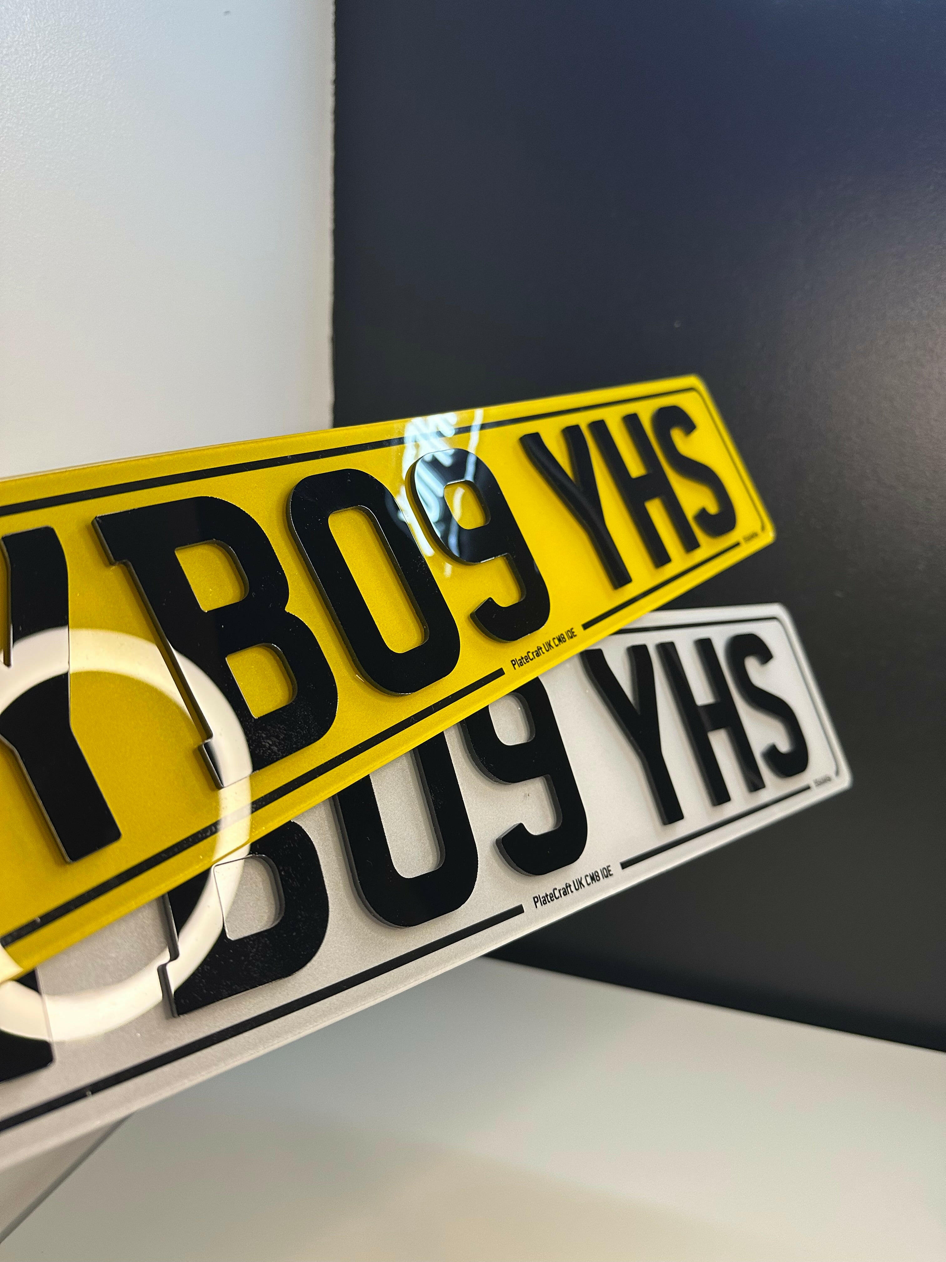 3D plates use gel resin lettering to create a raised, domed effect. 4D plates use laser-cut acrylic characters that sit even higher on the plate surface, creating a bolder and more defined appearance. Both styles are legal and offer a premium, eye-catching look.