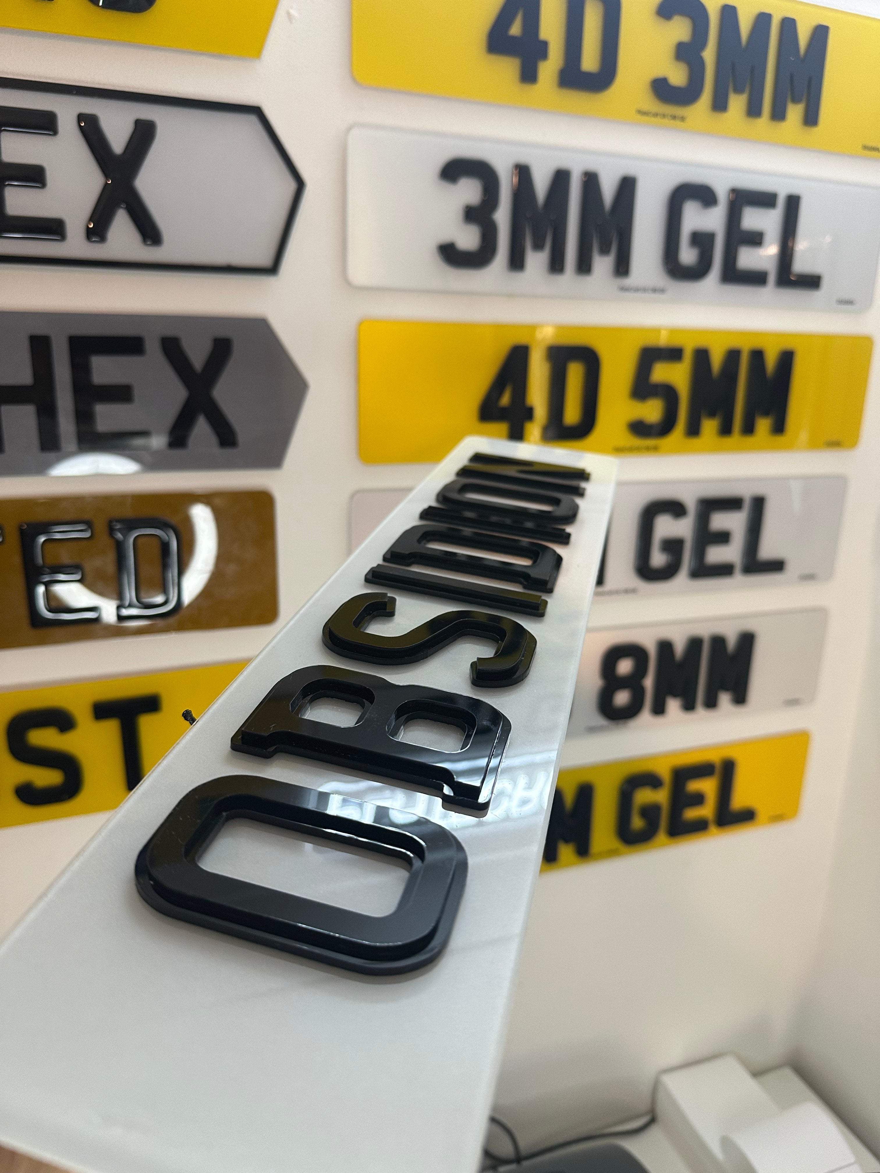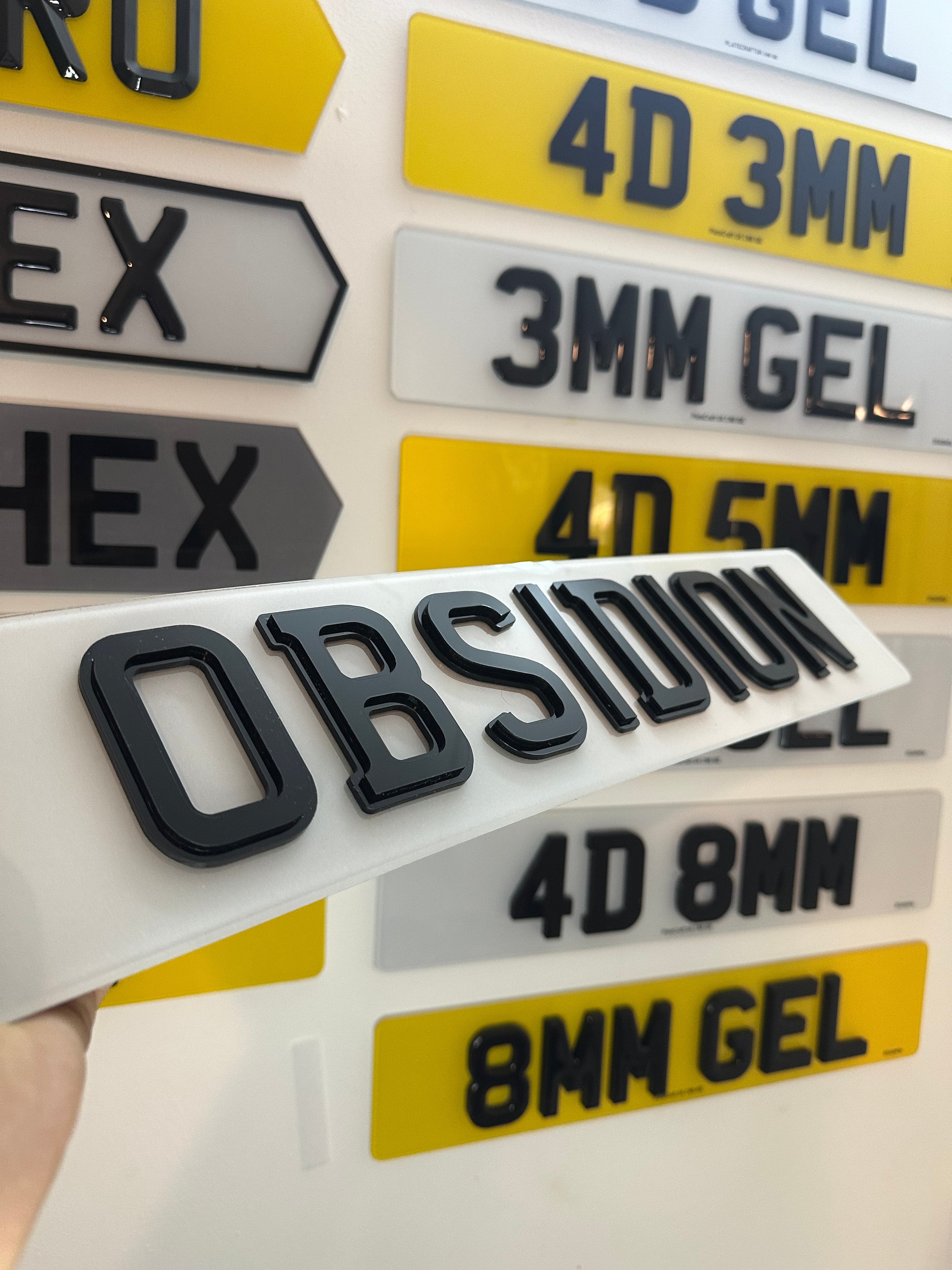 3D plates use gel resin lettering to create a raised, domed effect. 4D plates use laser-cut acrylic characters that sit even higher on the plate surface, creating a bolder and more defined appearance. Both styles are legal and offer a premium, eye-catching look.